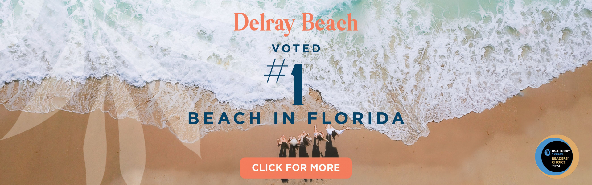 Delray Beach, Florida (May 29, 2024): The Delray Beach Downtown Development Authority (DDA) and Greater Delray Beach Chamber of Commerce are thrilled to announce: USA TODAY 10Best reveals Delray Beach is the winner in their 2024 Readers’ Choice Award for Best Beach in Florida. More details here: https://10best.usatoday.com/awards/travel/best-beach-in-florida-2024/.