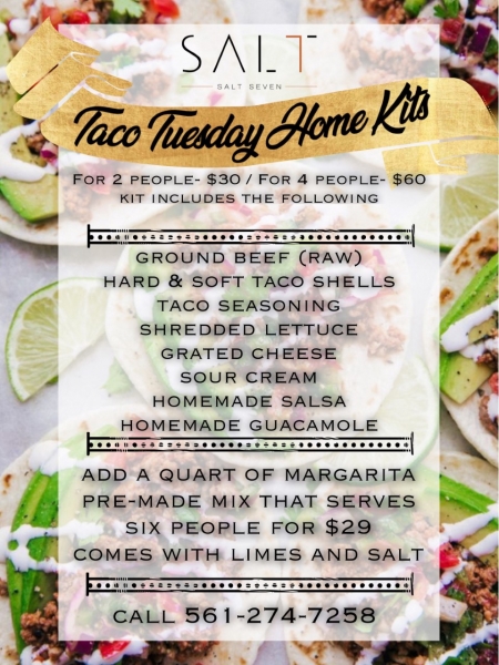 Available every Tuesday including Cinco de Mayo. Call 561-274-7258. For more information, click here.