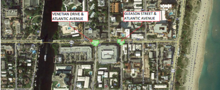 - Monday, 8/26/19 – The contractor will close the south half of the Atlantic/Venetian intersection to remove the brick pavers, excavate for the new base, and install new asphalt pavement. The intersection will be closed at Venetian to the south. Detour Signs will be in place to use Gleason Street and Miramar Drive to access businesses south of Atlantic Avenue.