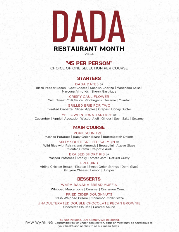 Dada Restaurant is located at 52 North Swinton Avenue in the heart of downtown Delray Beach serving award-winning new-American cuisine served seven days from 5pm-2am. Open since 2000, we’re an eclectic restaurant with an artistic bent with each room of our historic home styled in a different theme and with different local independent artists works adorning the walls as well as an intimate outdoor dining area and garden. We also offer an array of live entertainment every night of the week including open mic, poetry, art and fashion shows, comedy, singer-songwriters, live bands and our classic movie night on Sundays.