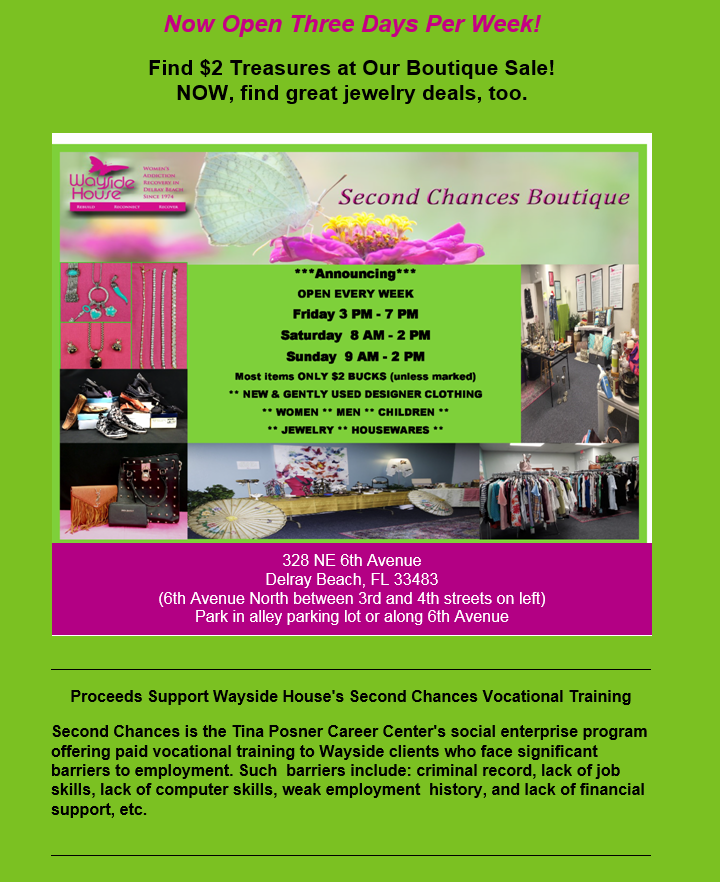 Wayside House is a nonprofit women's addiction treatment program founded in 1974 by Susan B. Anthony, great niece and namesake of the women's rights leader. It is a highly successful residential and outpatient program incorporating holistic services - equine, art, horticulture - into state-of-the-art therapies for addiction and co-existing conditions such as eating disorders.